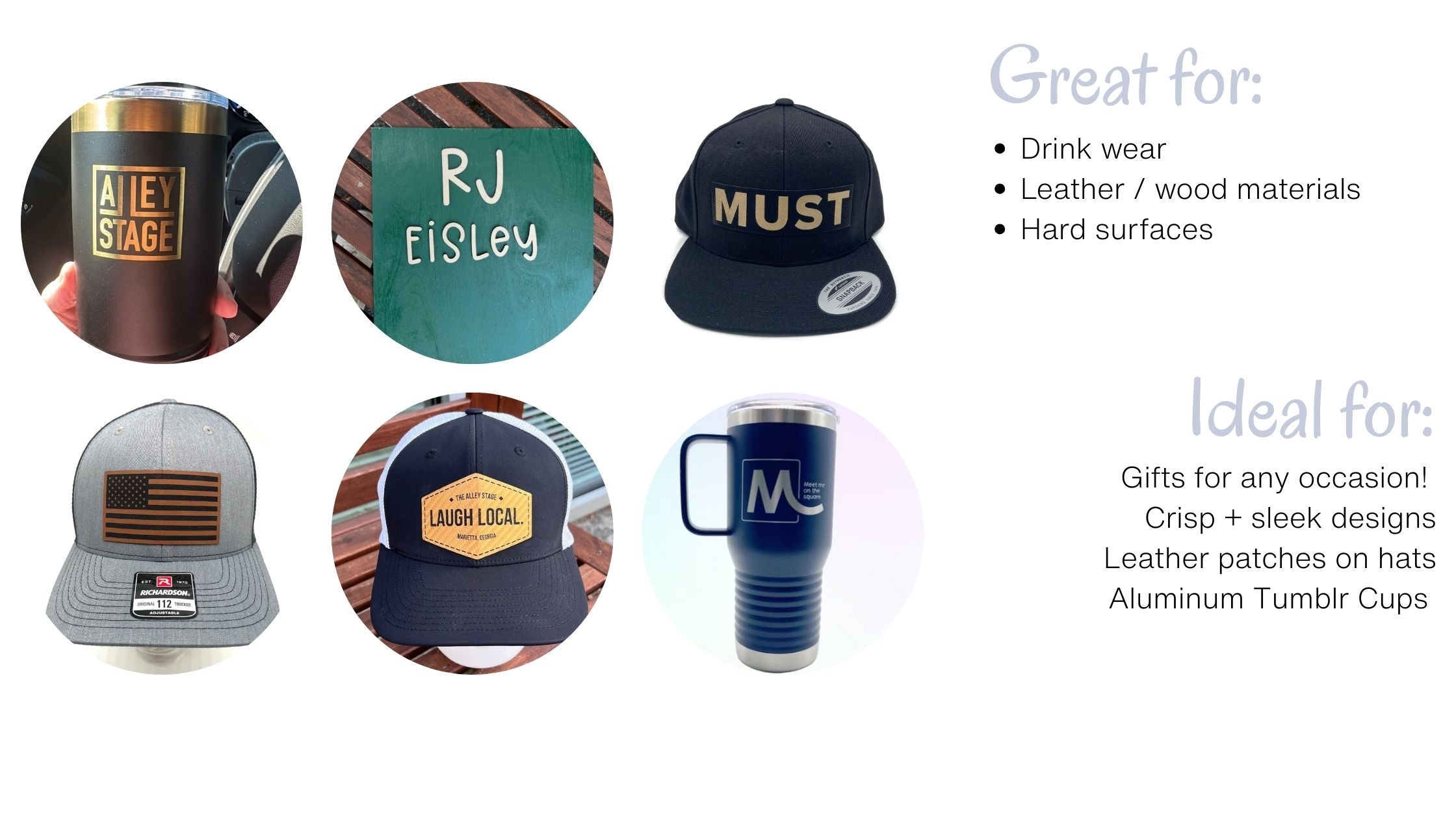 It’s the go-to for gifts that feel elevated, branding that lasts, and custom pieces that speak volumes—without saying a word. Clean, classy, and unmistakably custom.