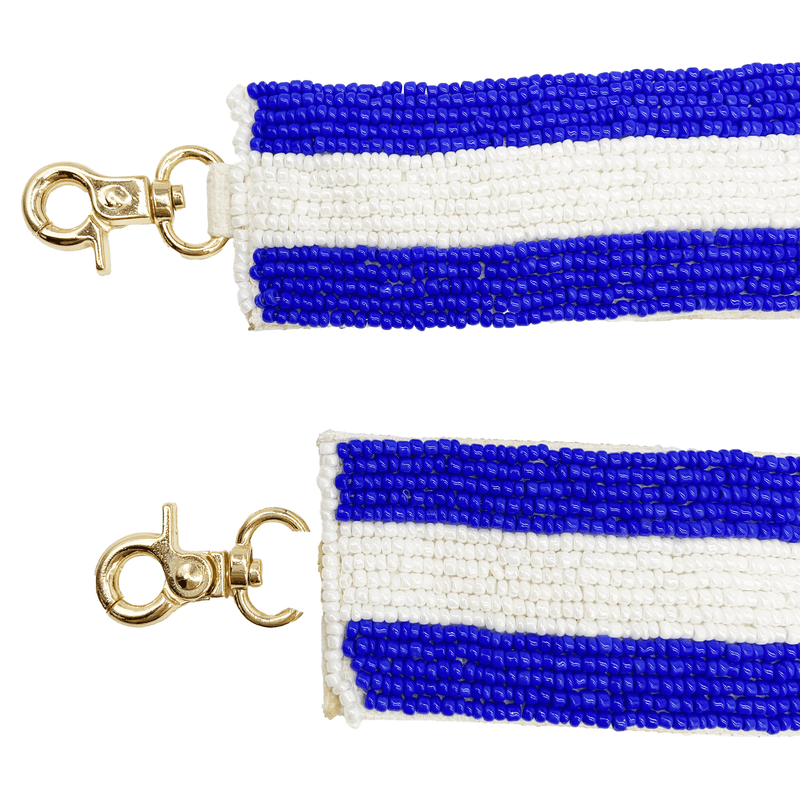 Elevate your clear bag status when you accessorize your Game Day look with our uniquely beaded blue stripe bag strap.