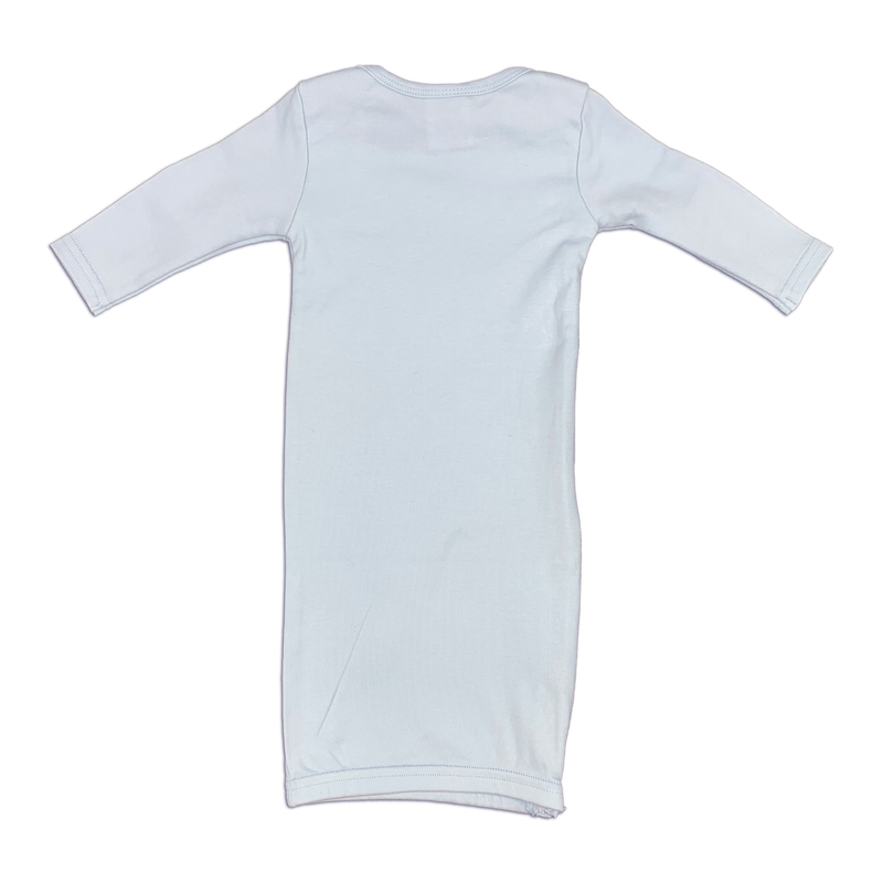 Keep your little one snug and stylish with our blue sleep sack gown and hat set. Crafted from 100% interlock cotton, the gown offers cozy warmth, while the hat, adorned with a charming knot detail, ensures comfort and cuteness in equal measure. Ideal for gifting, this set promises both practicality and adorable style for your baby.
