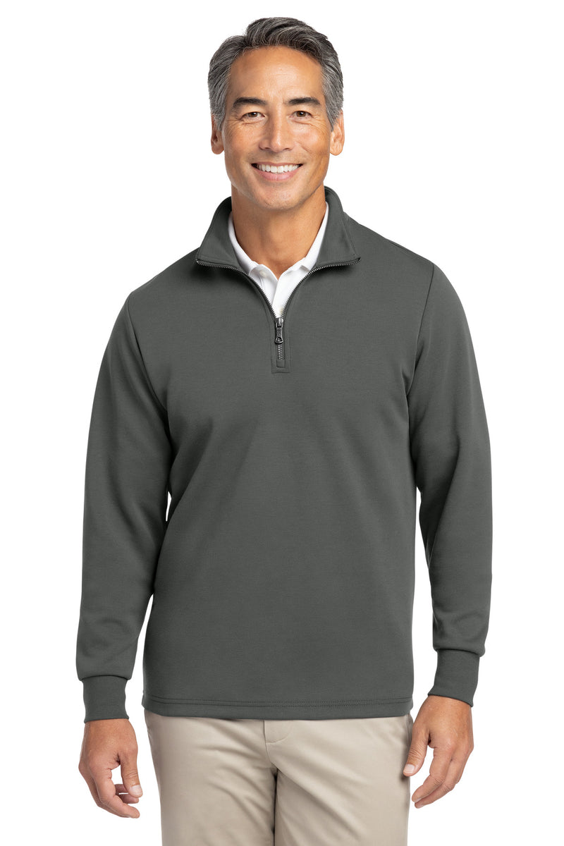Experience classic style and comfort with this double-knit quarter-zip pullover. Featuring a cadet collar and ribbed cuffs, it offers a clean, polished finish. The durable fabric blend ensures lasting wear, making it perfect for versatile layering or standalone wear in various settings. A timeless addition to any wardrobe.
