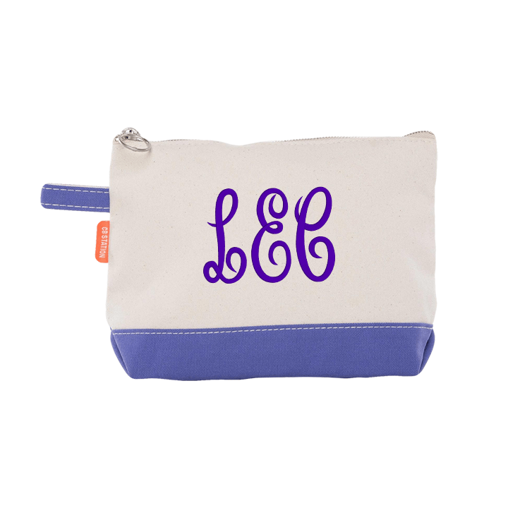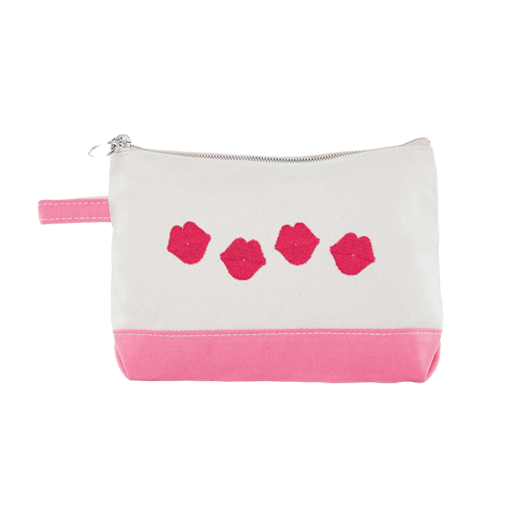 Check out this adorable makeup bag from CB Station, perfect for everyday essentials and keeping your favorite items in one place! With a compact set up and bright colors, this bag is perfect for everyone. Available in 19 classic two-tone body colors, you get your choice of an adorable red lips design, your own personal monogram or a custom design!