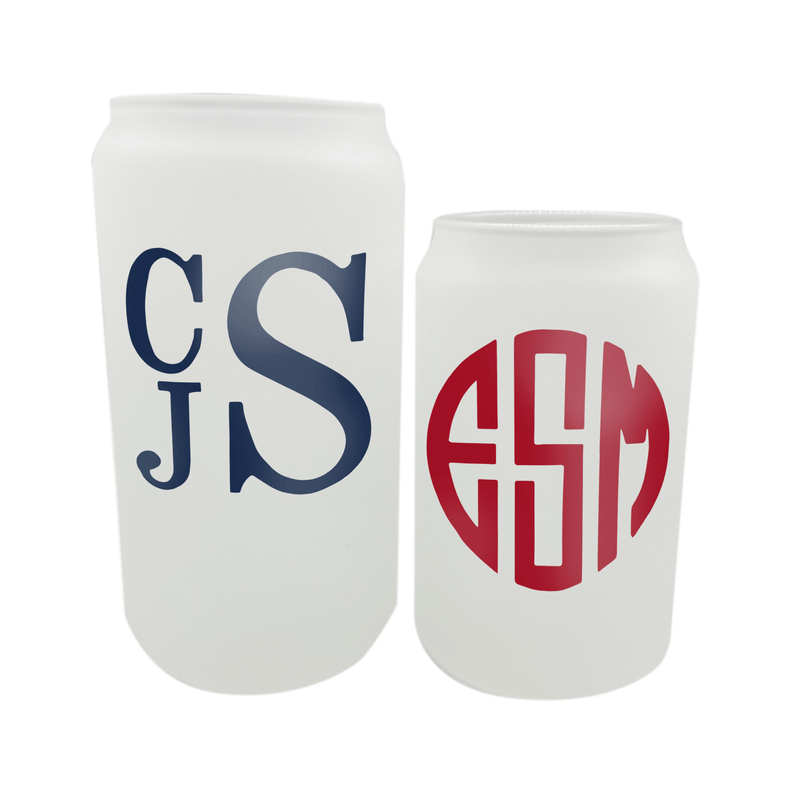 Our Frosted Beer Can Glass is customized with sublimation. All colors are available to print on the frosted glass.