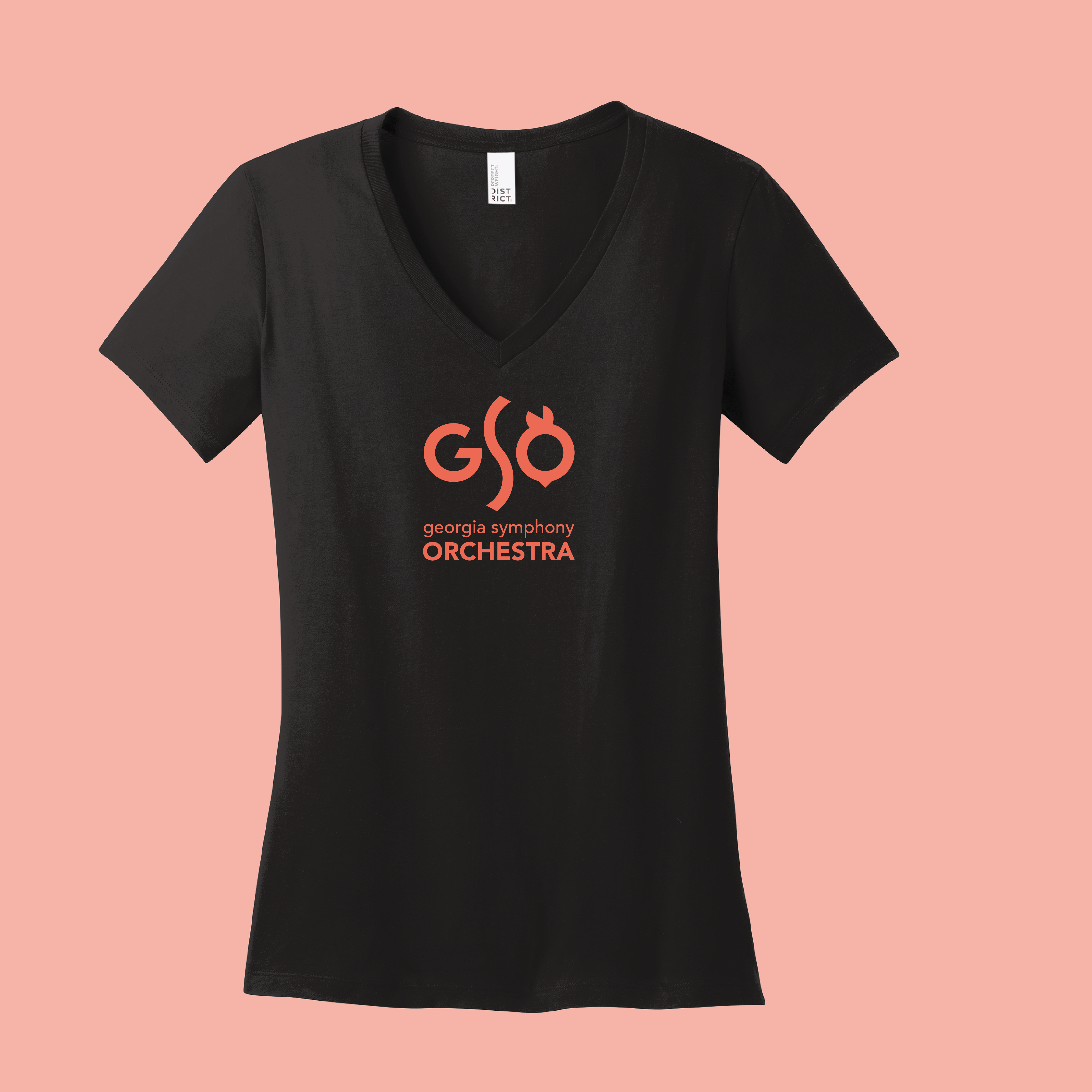 Represent your favorite orchestra with this GSO tee! This ladies v-neck t-shirt features a 5" wide profesionally heat-applied vinyl Georgia Symphony design.