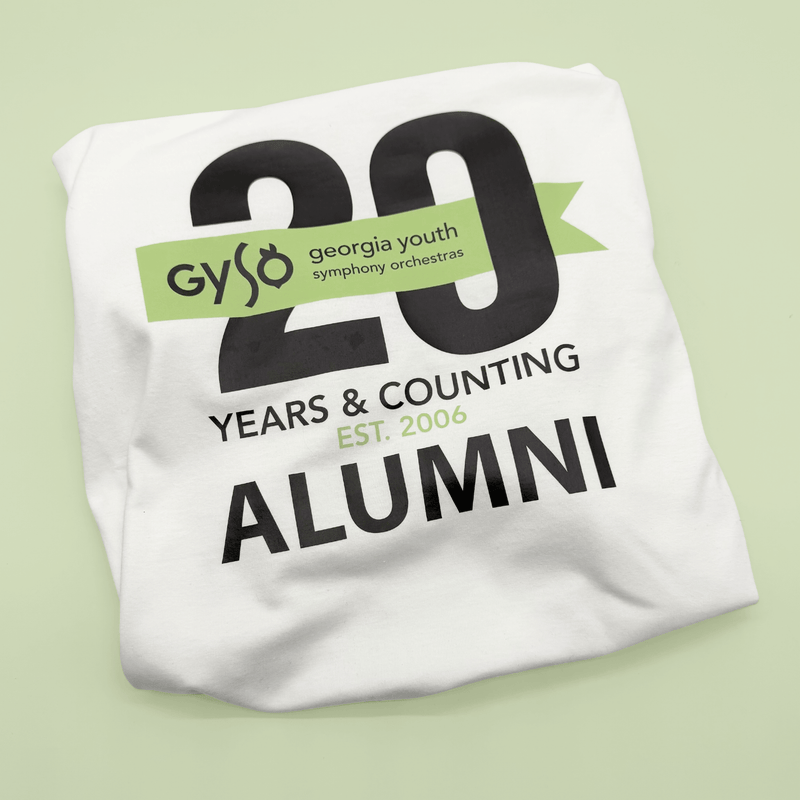 Celebrate two decades of artistry, friendship, and unforgettable performances with the limited edition GYSO Alumni 20th Anniversary Baseball Tee. Designed especially for alumni, families, and supporters, this commemorative raglan honors the musicians who helped shape the Georgia Youth Symphony Orchestras story.