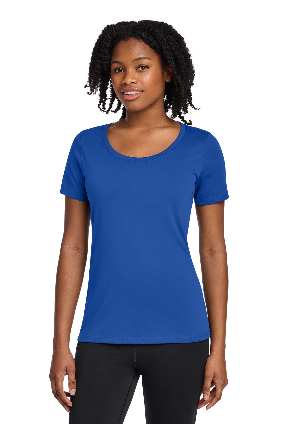 This women's performance tee features advanced sweat-wicking Dri-FIT fabric to keep you dry and comfortable during any activity. Designed with a durable rib knit scoop neck and a tag-free heat transfer label for ultimate comfort. Ideal for workouts or everyday casual wear, offering lasting quality.
