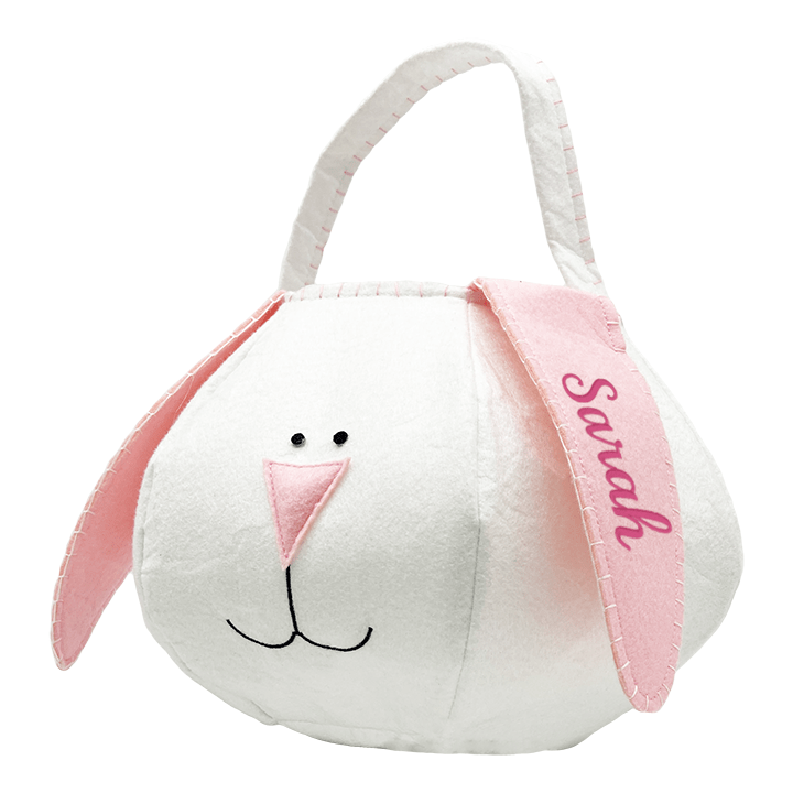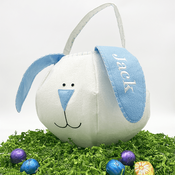 These adorable and sweet bun-bun baskets are perfect for your little cuddle bunny! These loppy eared bunny baskets are ideal for Easter egg hunts, with soft handles and a light weight that children of all ages can easily carry. Available in blue and pink, with your child's name embroidered on one of the ears.