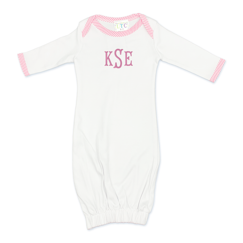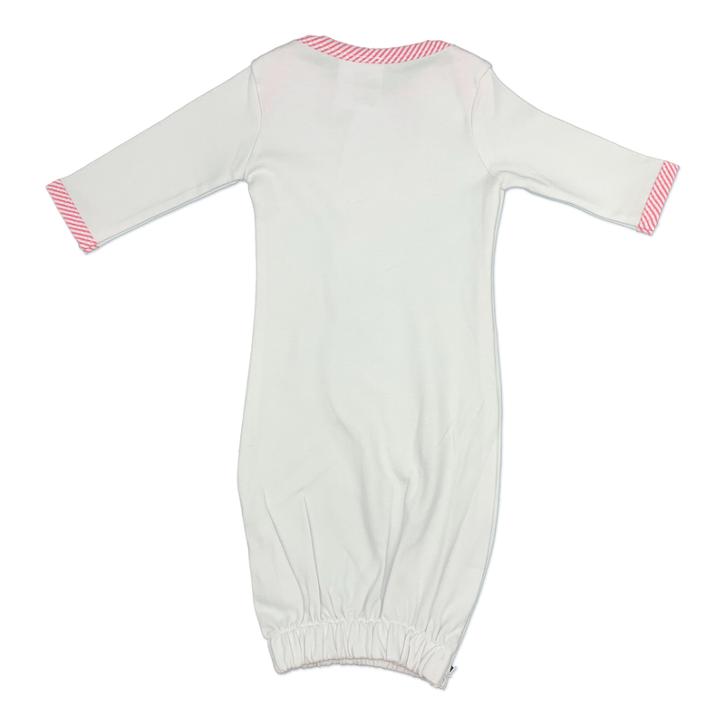 Pink Seersucker Trim Infant Gown