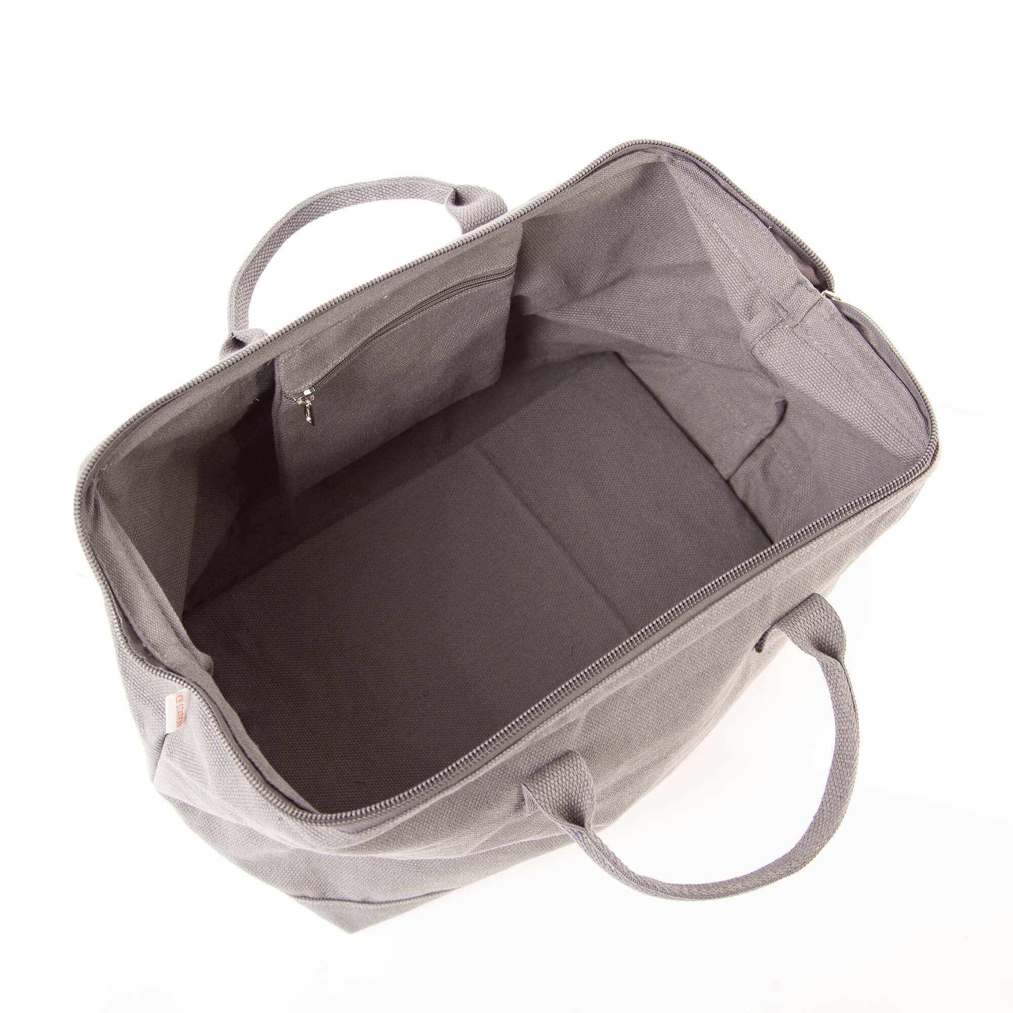 - Top zip closure provides a large top opening.