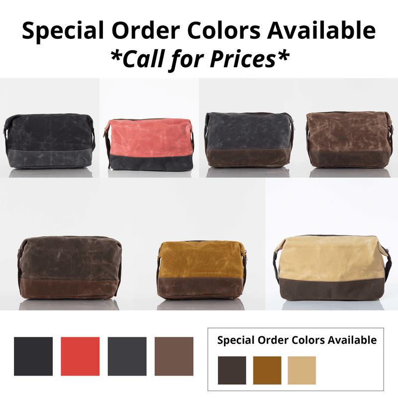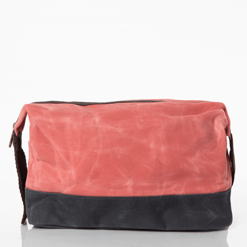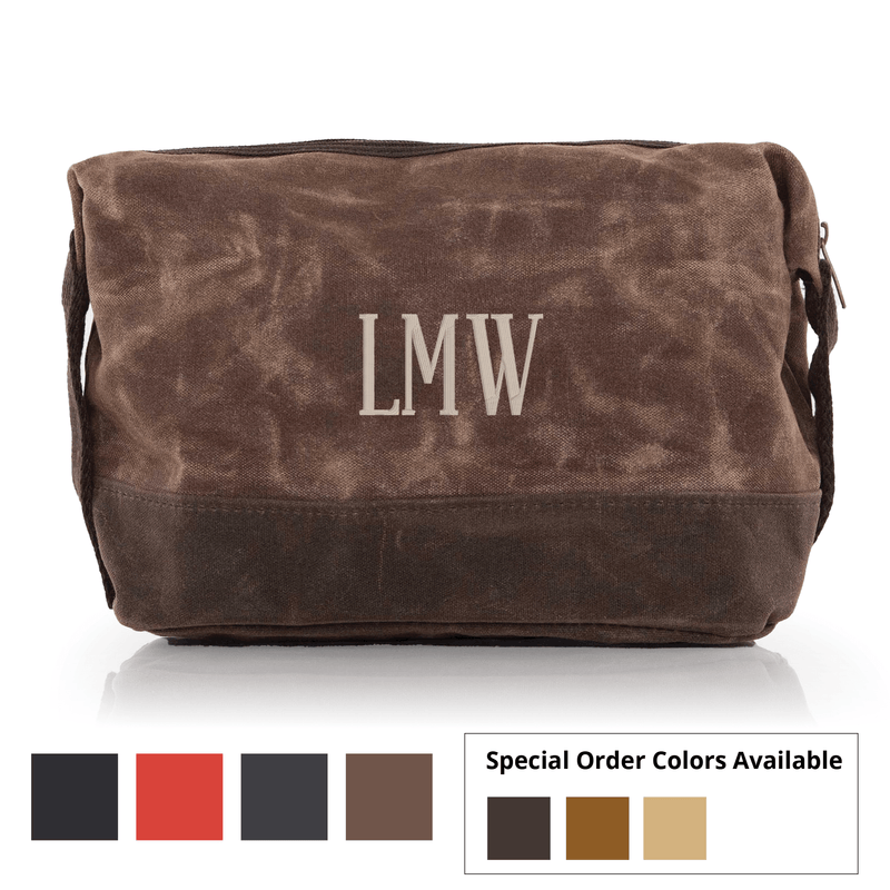 Wow! We just can't get enough of our new Waxed Canvas Top-Zip Dopp Kit! Our largest and most spacious travel dopp kit to date, this style is sure to fit all of your travel needs without a struggle to zip it closed! Its stylish design features side antique brass snaps for additional closure and a higher end look, a patterned Gray Stripes Canvas inner lining, and rich deep brown accents throughout.