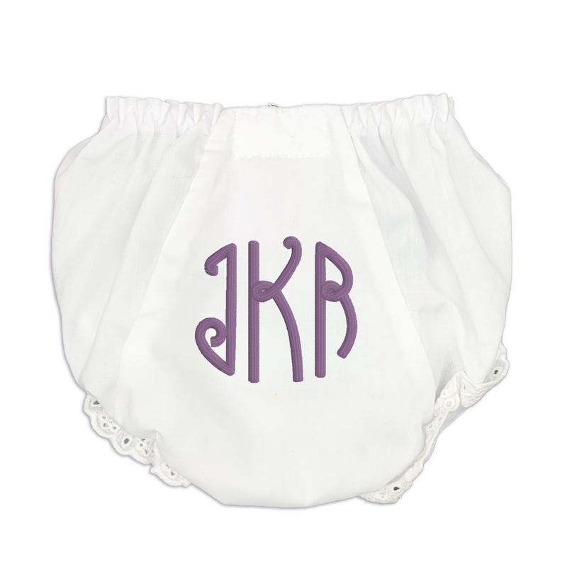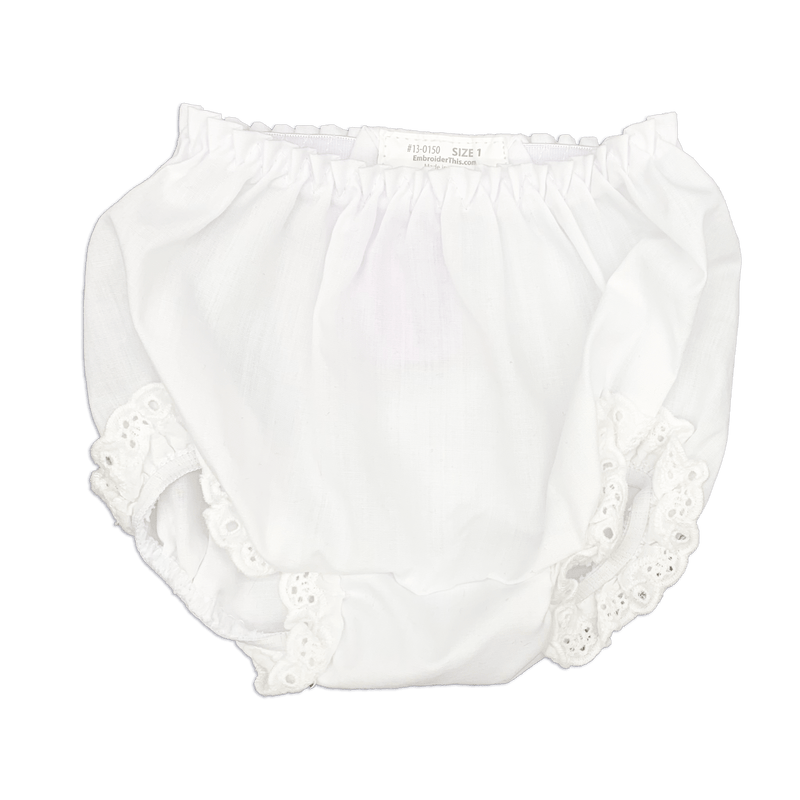 Our classic White Lace Diaper Covers have eyelet lace trim, for just that little extra cute touch.